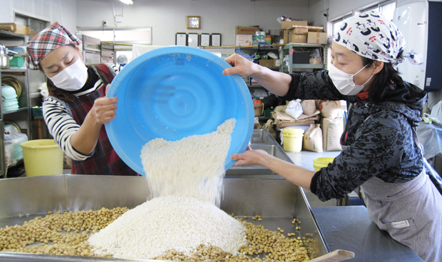 大豆は主に、枝豆で食べても美味しい千葉県産の“緑大豆”を使用し、米麹も「美味しいお米!」と評判の長柄町産“ながらコシヒカリ”を使用しています。