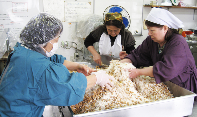 寒さの厳しい冬場は、雑菌の繁殖も少なくカビの発生を防ぎます。また、冬から春・夏そして秋へと季節の移ろいに伴う温度変化などにより、ゆっくりと発酵・熟成しますから、コクのあるまろやかな美味しい味噌に仕上がります。